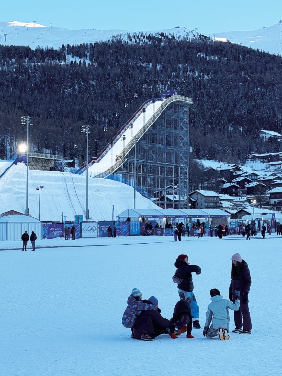 利维尼奥的这条主干道,它有些像是将米兰冬奥会期间的小镇划成了两块:靠东面的一块区域建起了临时性的包括赛场在内的冬奥设施,而靠西面的那部分则是当地居民、外来游客和赛会相关人员都会在此活动的小镇生活区。而之于来到这里参赛的大部分选手,他们心里兴许也有一条分一为二的“线”,与冬奥赛场角逐分处两端的——是他们对滑雪运动热忱的爱,以及同侪间的惺惺相惜。