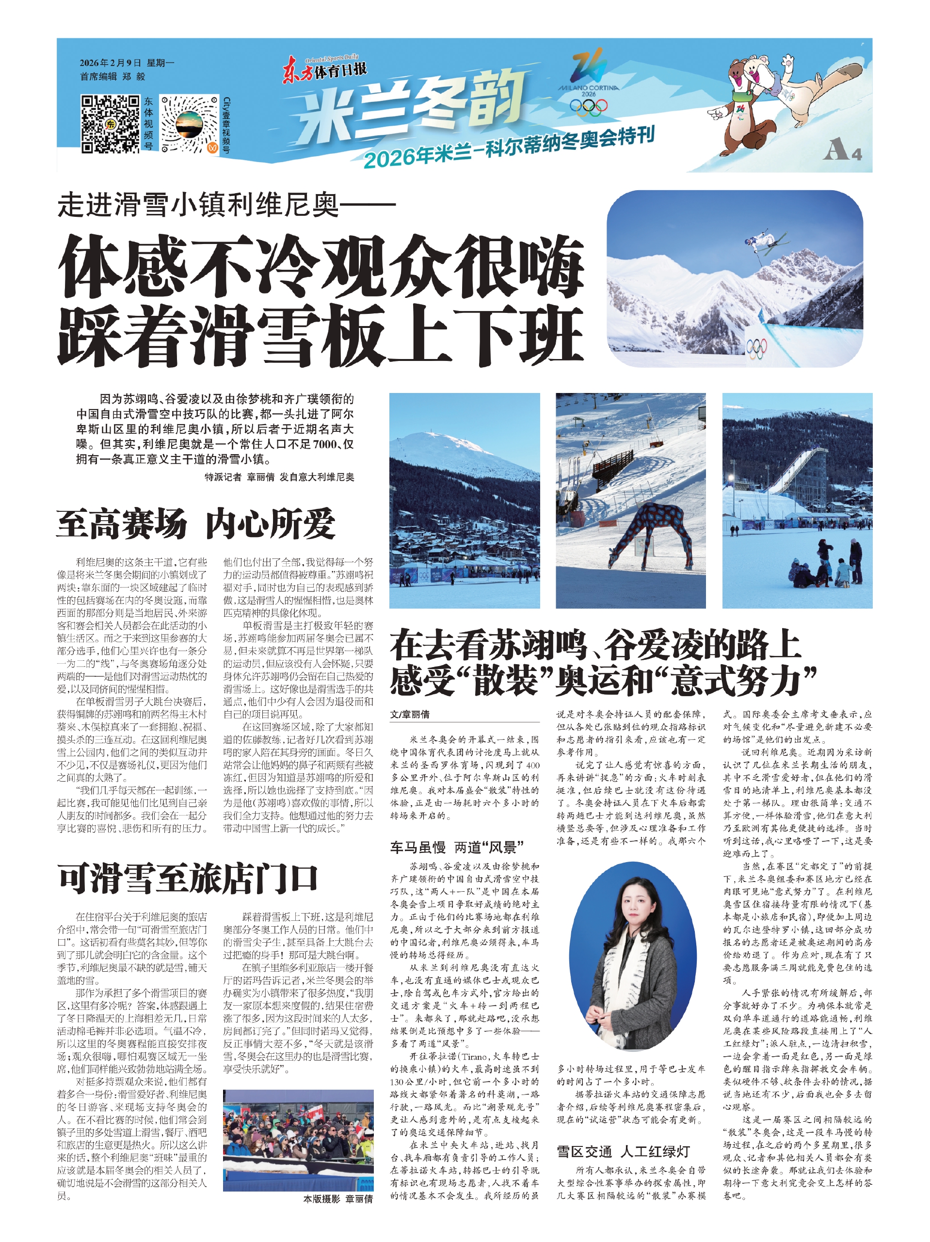 在镇子里维多利亚旅店一楼开餐厅的诺玛告诉记者,米兰冬奥会的举办确实为小镇带来了很多热度,“我朋友一家原本想来度假的,结果住宿费涨了很多,因为这段时间来的人太多,房间都订完了。”但同时诺玛又觉得,反正事情大差不多,“冬天就是该滑雪,冬奥会在这里办的也是滑雪比赛,享受快乐就好”。