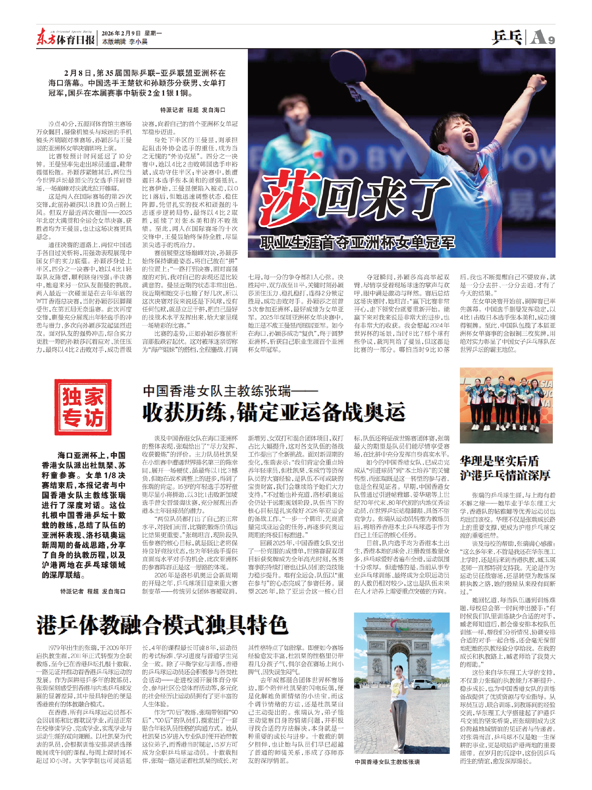 2月8日,第35届国际乒联-亚乒联盟亚洲杯在海口落幕。中国选手王楚钦和孙颖莎分获男、女单打冠军,国乒在本届赛事中斩获2金1银1铜。