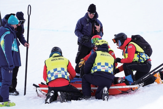 医务人员第一时间进场检查,刘佳宇一度失去意识,在雪道上接受了近10分钟的现场救治