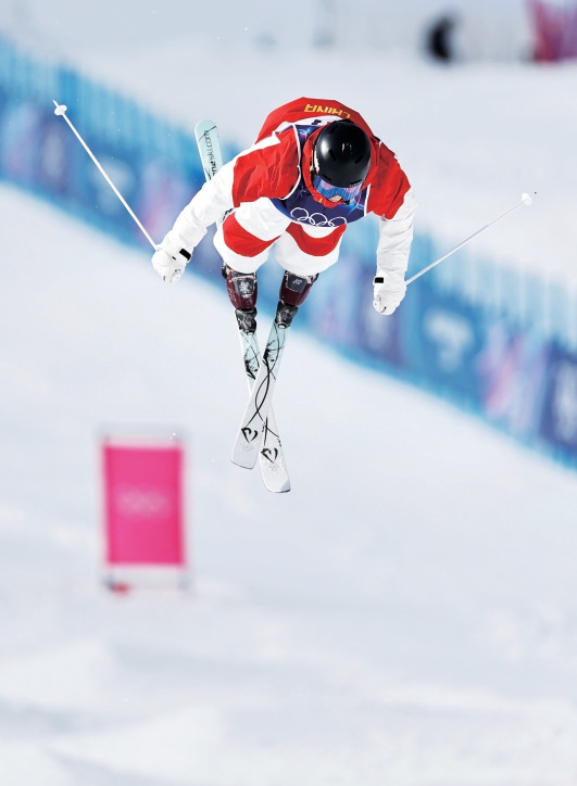 这是所有滑雪项目中公认最难稳定驾驭的地形之一——选手在布满密集雪包的陡峭赛道上高速滑降的同时,需要像猫科动物一样灵活地跳跃、回转,并在两个跳台上完成空中动作。