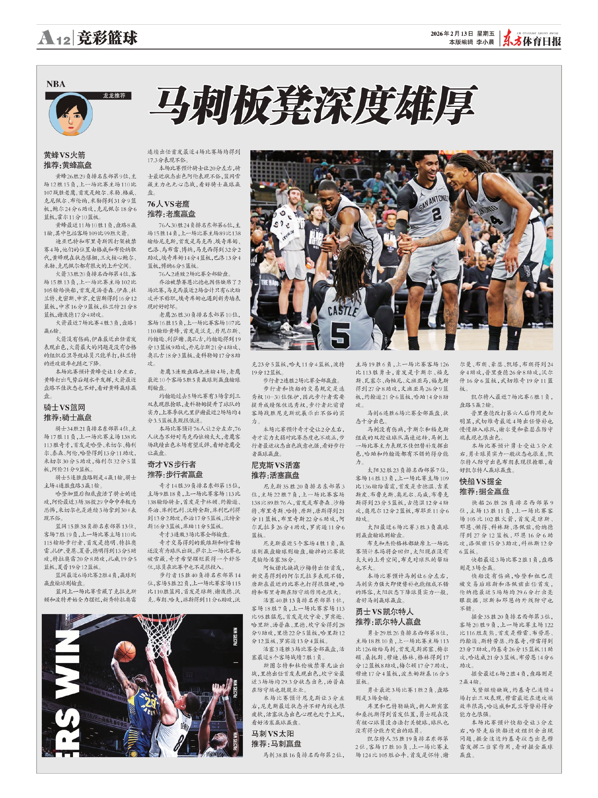 戈登继续缺战,约基奇已连续4场打出三双表现,穆雷最近在进攻端效率很高,哈达威和瓦兰等替补得分能力也很强。