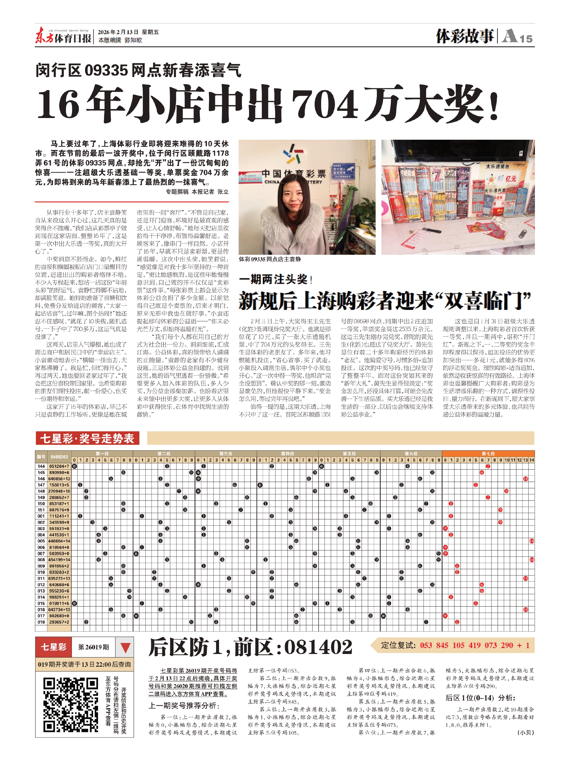 这两天,店里人气爆棚,她也成了周边商户和居民口中的“幸运店主”。小袁激动地表示:“横幅一挂出去,大家都沸腾了。我是忙,但忙得开心。”再过两天,她也要回老家过年了,“我会把这份喜悦带回家里。也希望购彩的朋友们理性投注,献一份爱心,也买一份期待和幸运。”