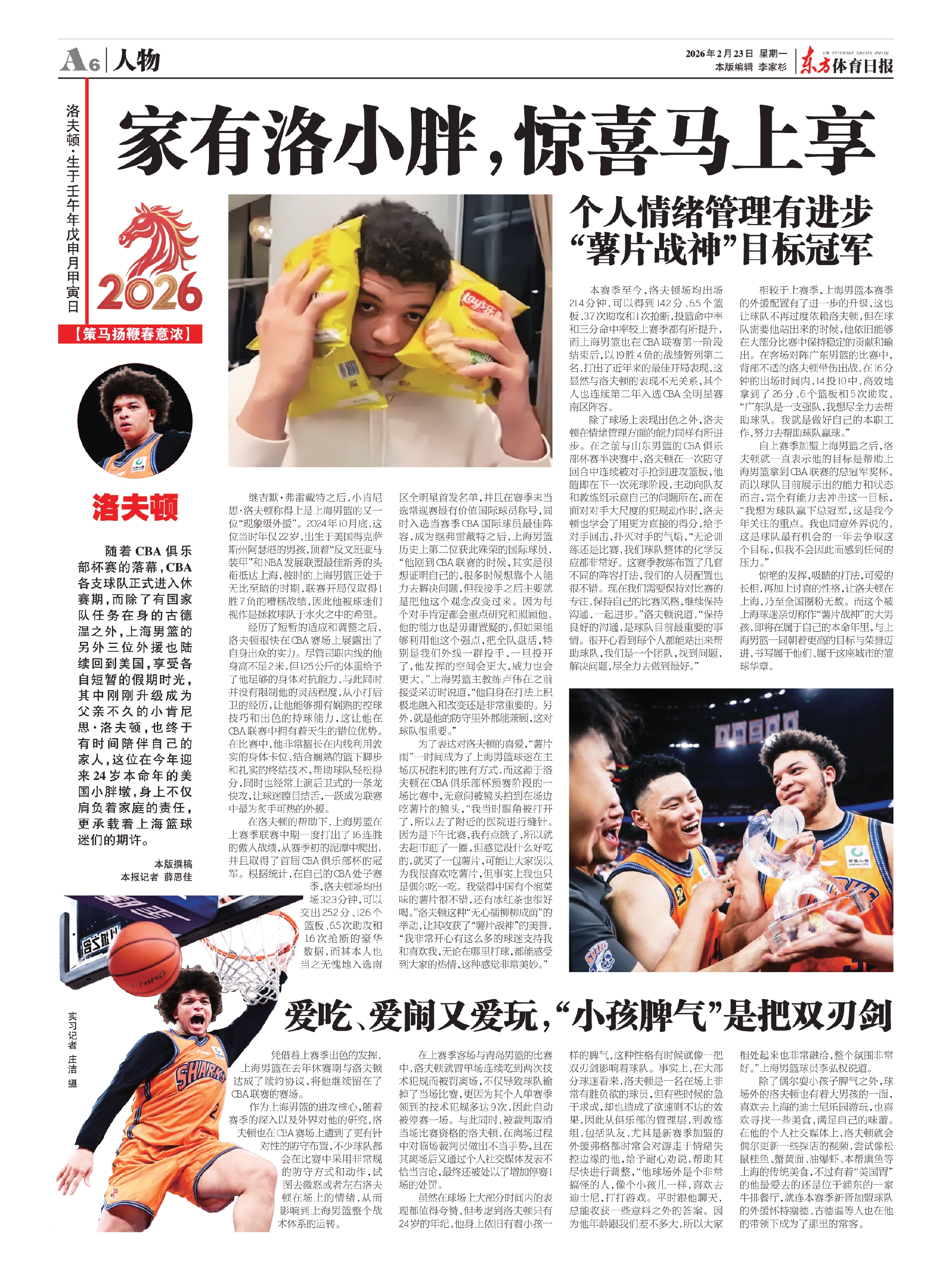 惊艳的发挥,吸睛的打法,可爱的长相,再加上讨喜的性格,让洛夫顿在上海,乃至全国圈粉无数。而这个被上海球迷亲切称作“薯片战神”的大男孩,即将在属于自己的本命年里,与上海男篮一同朝着更高的目标与荣誉迈进,书写属于他们、属于这座城市的篮球华章。