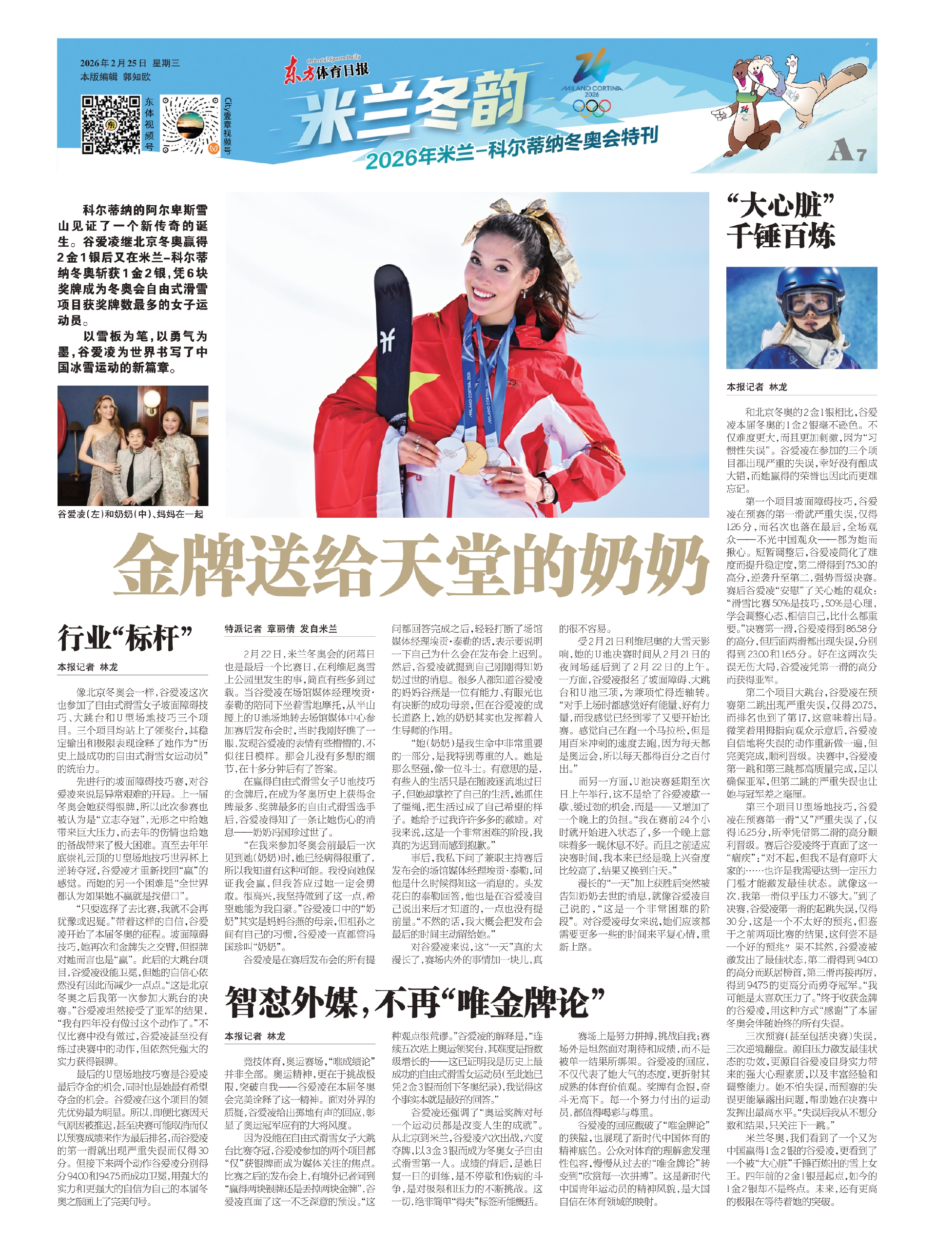 2月22日,米兰冬奥会的闭幕日也是最后一个比赛日,在利维尼奥雪上公园里发生的事,简直有些多到过载。当谷爱凌在场馆媒体经理埃贡·泰勒的陪同下坐着雪地摩托,从半山腰上的U池场地转去场馆媒体中心参加赛后发布会时,当时我刚好瞧了一眼,发现谷爱凌的表情有些懵懵的,不似往日模样。那会儿没有多想的细节,在十多分钟后有了答案。