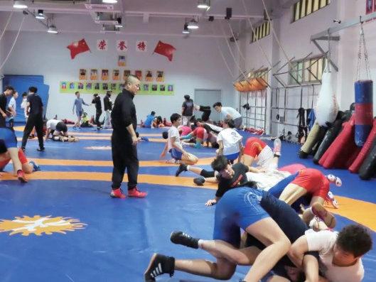 训练场上,队员们身着道服在垫子上反复演练,投技干脆、固技严密,摔投的“砰砰”声与道服摩擦的“簌簌”声,交织成奋进的旋律。拳击台上,拳手们挥拳如雨,直拳迅疾、勾拳沉重、摆拳凌厉,沙袋晃动的嗡鸣、脚步摩擦声与教练指导声,构成激昂的冬训交响乐。摔跤对抗区,队员们两两角力、肌肉紧绷,汗水浸湿衣衫与垫子,呐喊声、加油声此起彼伏,彰显杨浦重竞技的强劲实力。