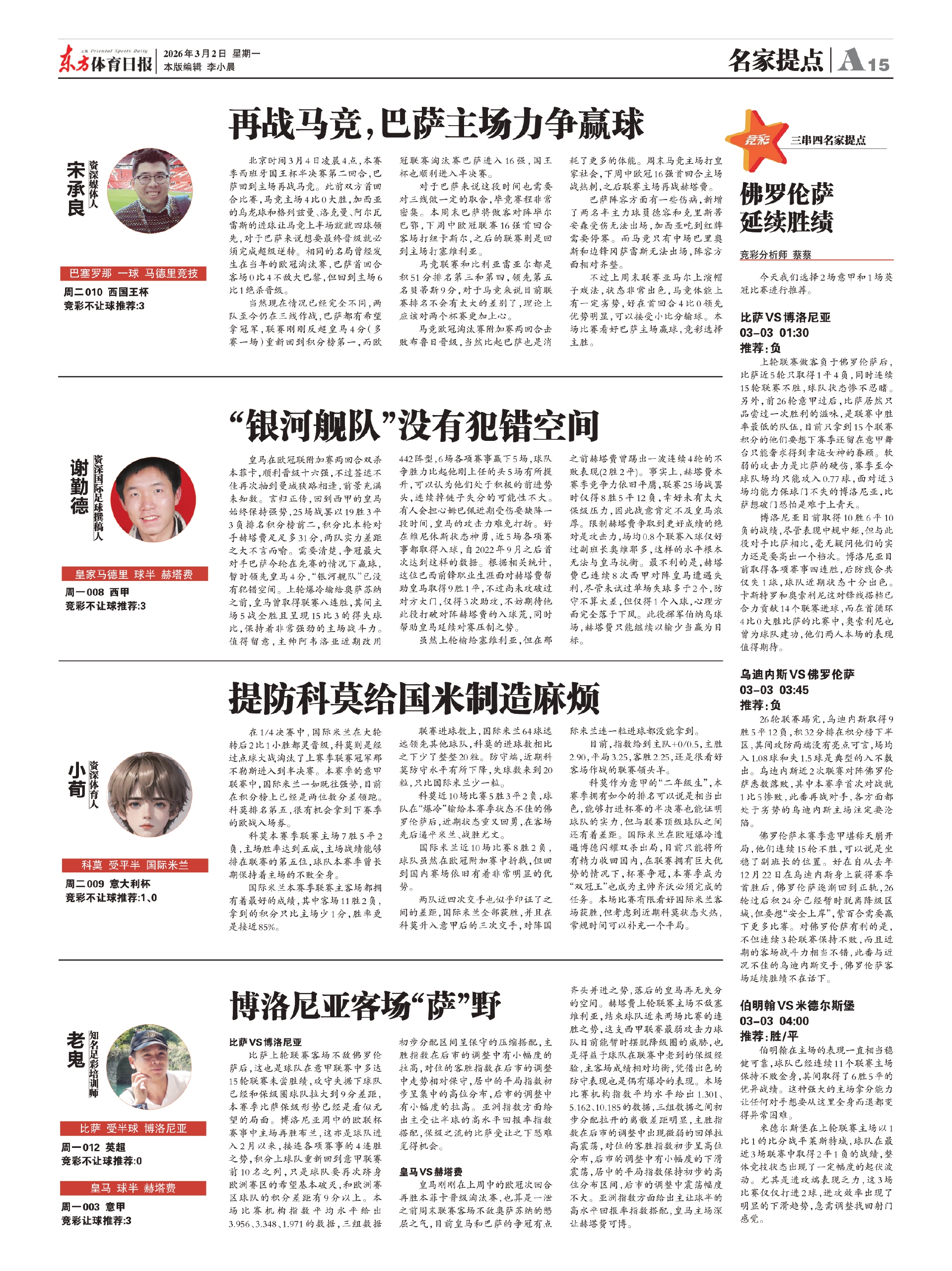 不过上周末联赛亚马尔上演帽子戏法,状态非常出色,马竞体能上有一定劣势,好在首回合4比0领先优势明显,可以接受小比分输球。本场比赛看好巴萨主场赢球,竞彩选择主胜。