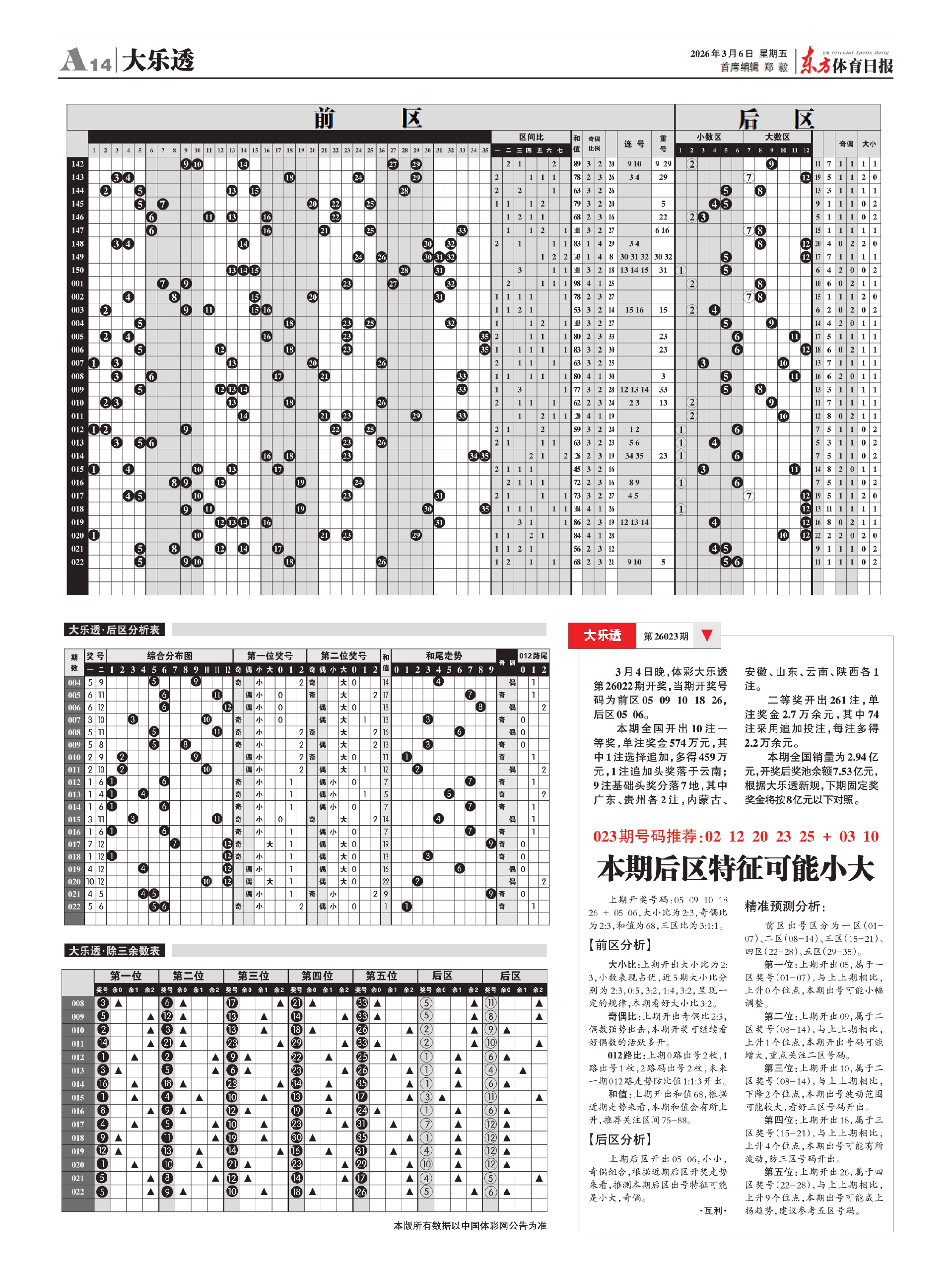 大乐透 第26023期 本期后区特征可能小大 大乐透·除三余数表 大乐透·后区分析表 大乐透