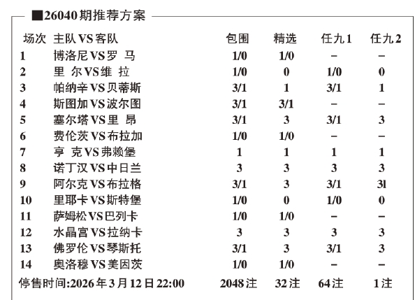 注:比赛场次截止时间为3月10日23:59,具体购买场次以体彩中心网站最终显示为准