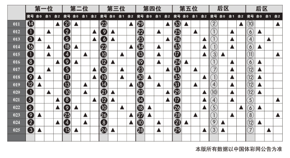 大乐透·除三余数表 大乐透·后区分析表 大乐透第26026期 大乐透