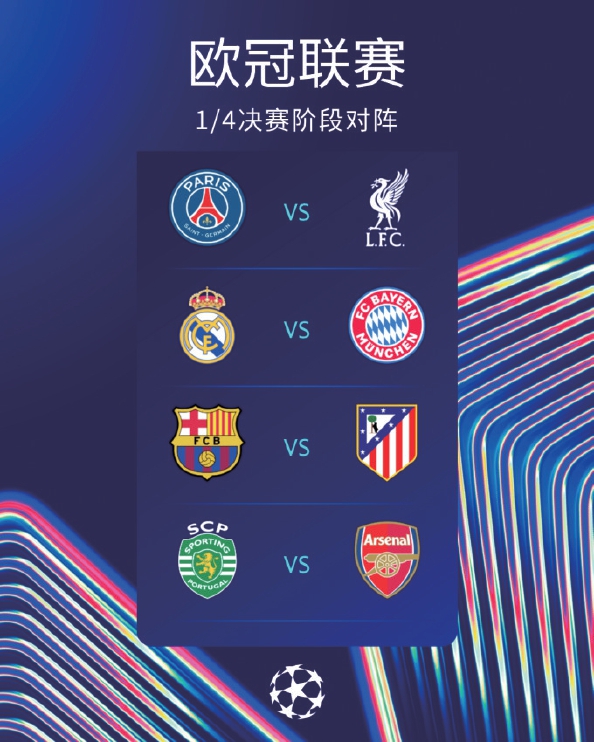 八强对阵出炉,四组对决,每一场都是过往故事的续写,每一次碰撞都关乎豪门的荣耀与救赎。根据官方赛程,1/4决赛首回合将于4月7日、8日开打,次回合于4月14 日、15日进行,胜者晋级欧冠四强。