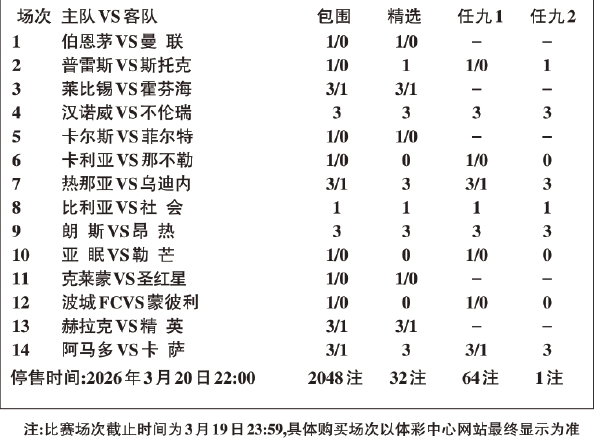 本周继续是欧洲赛事的舞台,本期胜负彩“14选9”由1场英超、1场英冠、1场德甲、2场德乙、2场意甲、1场西甲、1场法甲、3场法乙、1场荷甲和1场葡超构成。