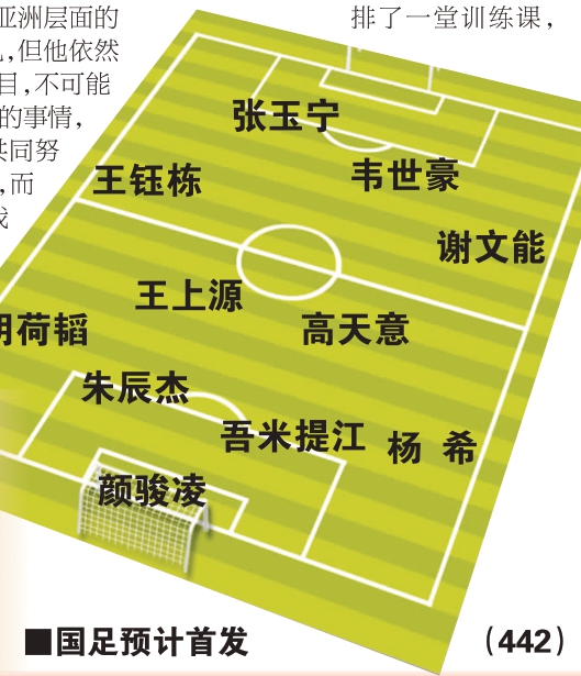 最近两天的训练当中,邵佳一安排了11对11的分组对抗,虽然在比赛过程当中会随时进行调整,但总体看来,国足首战与库拉索队的这场比赛,他大概率会采取以老带新的策略,尤其是在中轴线上,颜骏凌、朱辰杰、韦世豪和张玉宁等正值当打之年的“老”将,势必要承担起更大的责任,而这同样也是邵佳一在国足更新换代问题上“饭要一口一口吃”思路的体现。