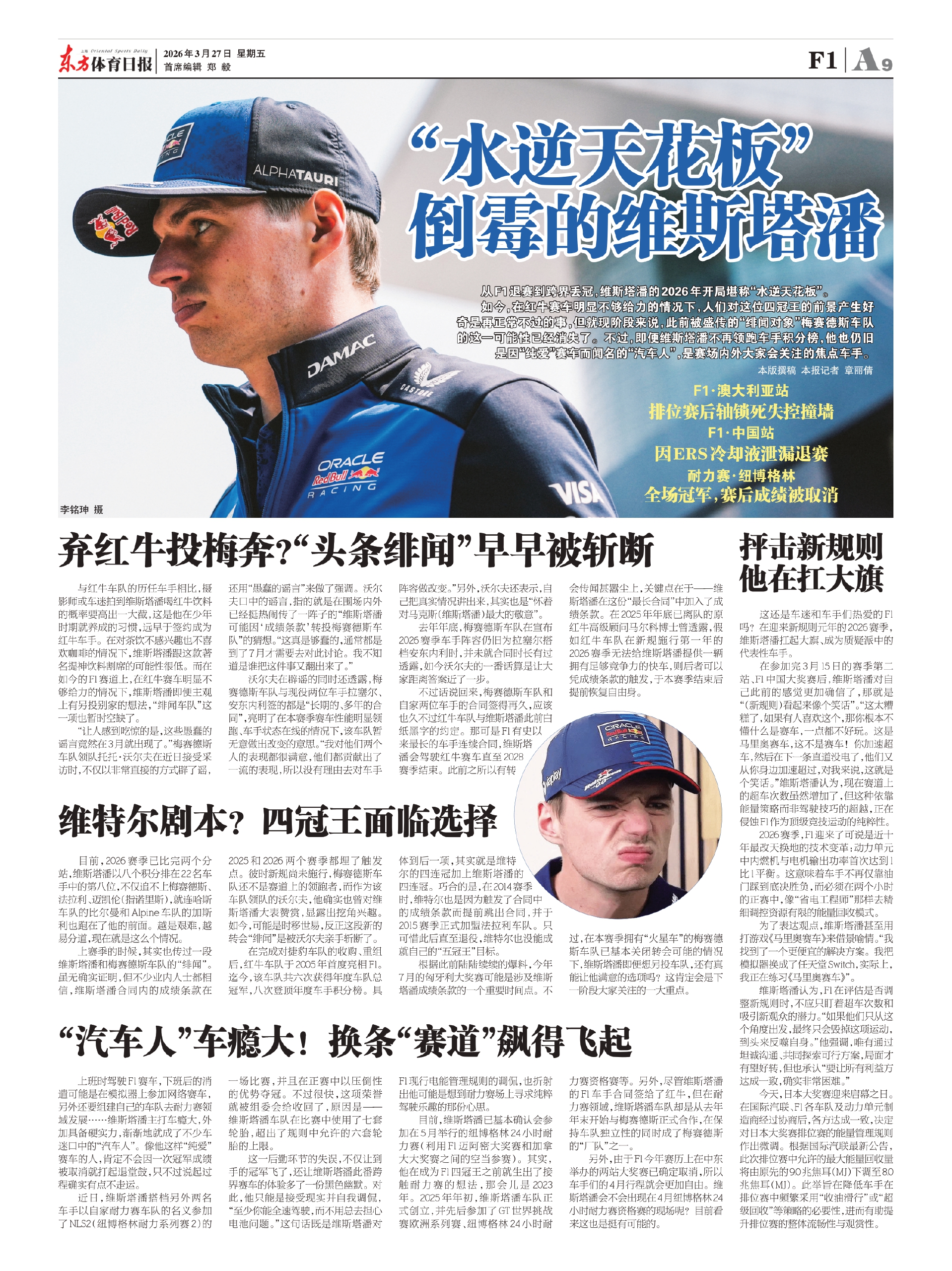 这还是车迷和车手们热爱的F1吗?在迎来新规则元年的2026赛季,维斯塔潘扛起大旗、成为质疑派中的代表性车手。