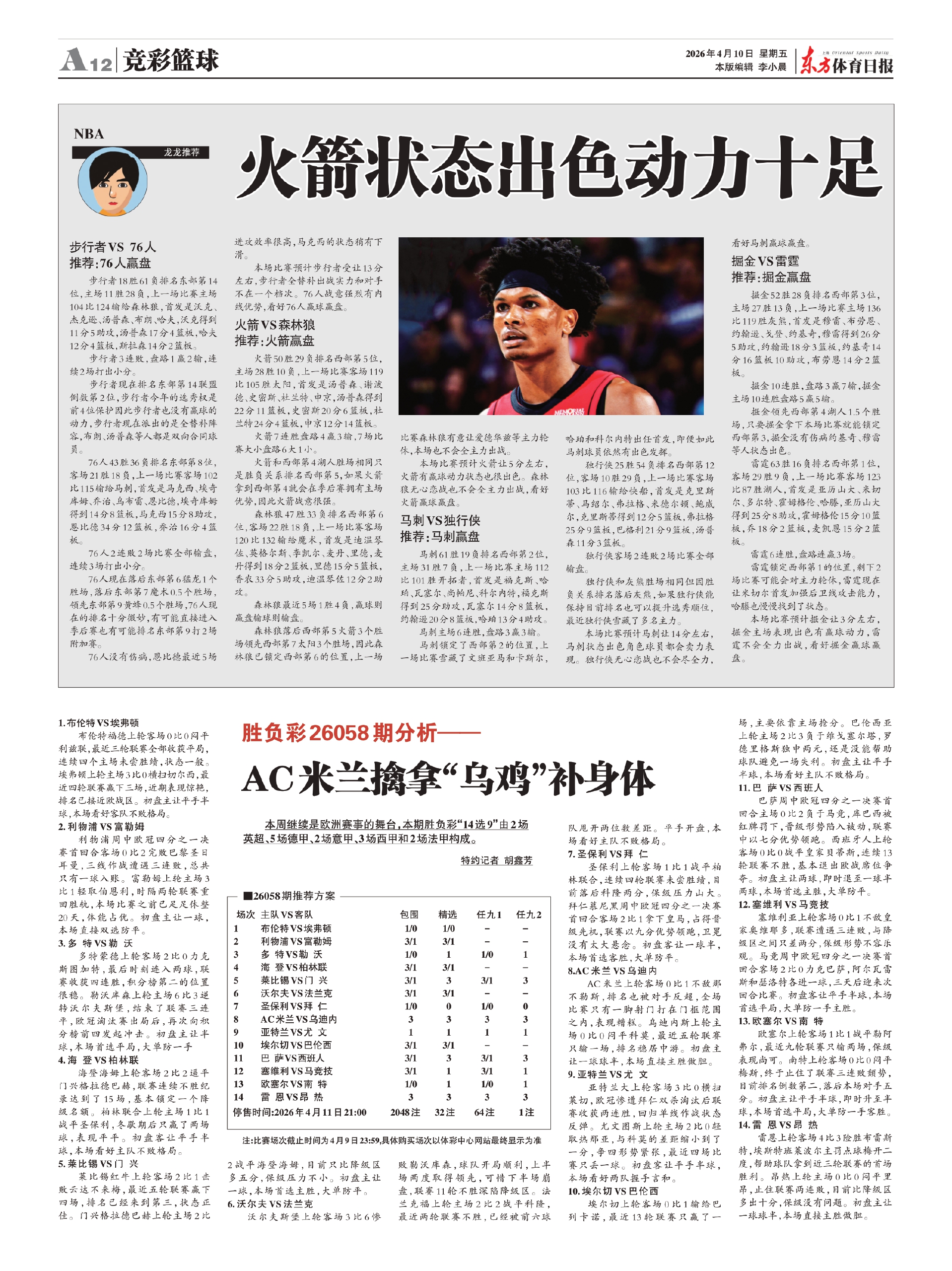 掘金领先西部第4湖人1.5个胜场,只要掘金拿下本场比赛就能锁定西部第3,掘金没有伤病约基奇、穆雷等人状态出色。