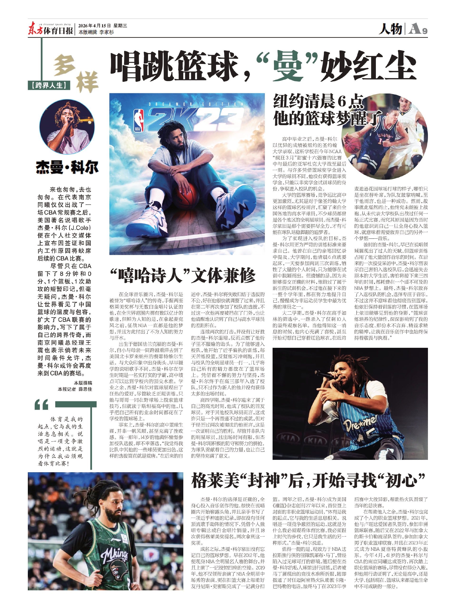 在全球音乐圈内,杰曼·科尔是被誉为“嘻哈诗人”的传奇,手握两座格莱美奖杯与无数白金唱片认证的他,在全世界范围内拥有数以亿计的歌迷,但鲜为人知的是,在拿起麦克风之前,征战NBA一直都是他的梦想,并且为此付出了不为人知的努力与汗水。