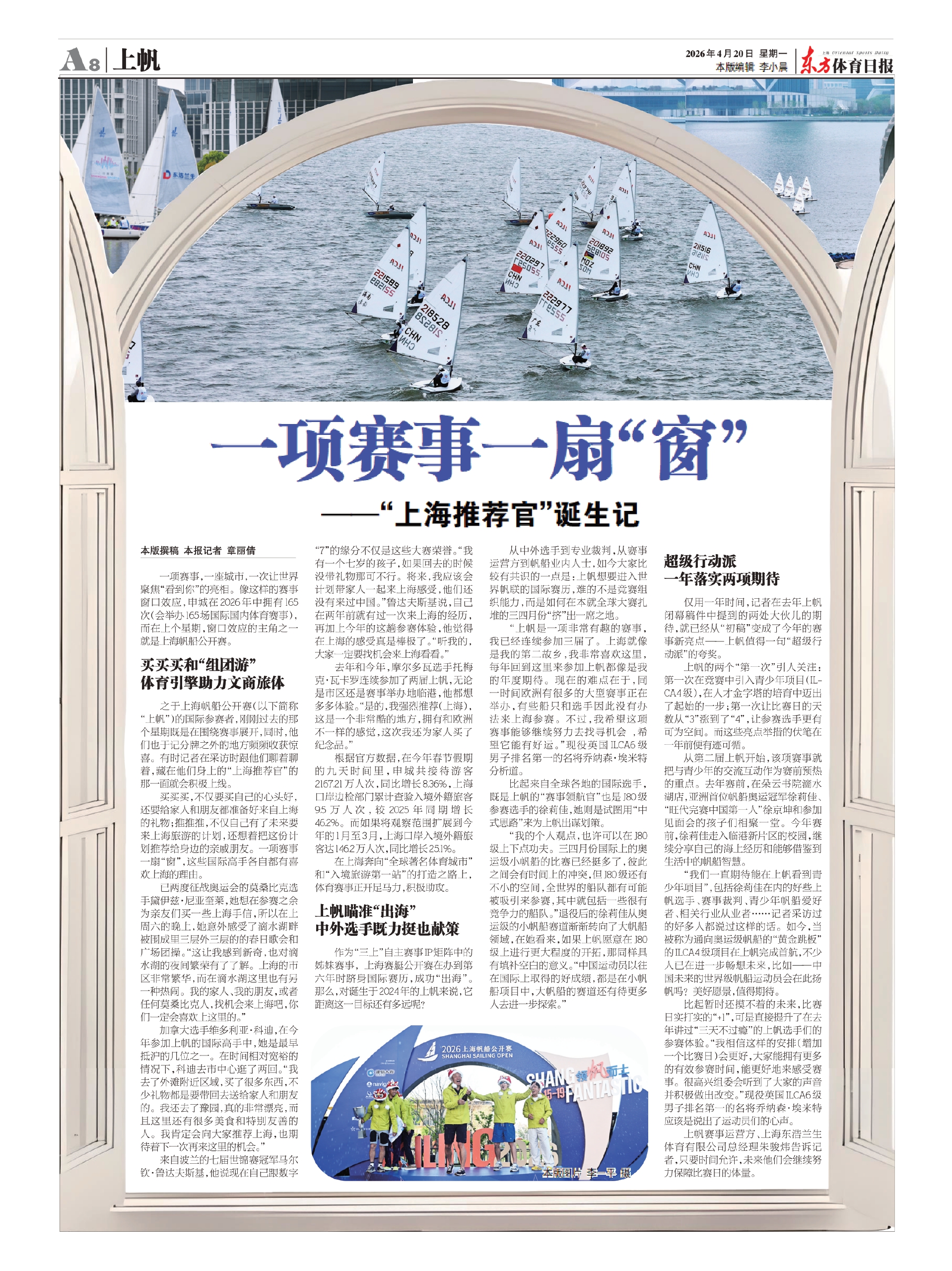 一项赛事,一座城市,一次让世界聚焦“看到你”的亮相。像这样的赛事窗口效应,申城在2026年中拥有165次(会举办165场国际国内体育赛事),而在上个星期,窗口效应的主角之一就是上海帆船公开赛。