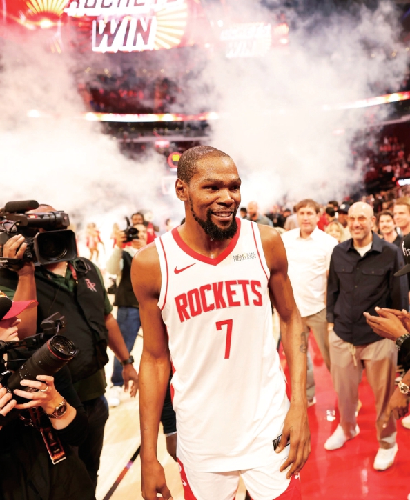 杜兰特此前在训练中因右膝挫伤导致缺席第一场比赛,如此也导致火箭群龙无首大比分输球,虽然火箭对杜兰特第二场复出持乐观态度,但运动专家认为如果杜兰特强行复出可能会终结职业生涯,预计火箭会让杜兰特休息在第三场让他上场。