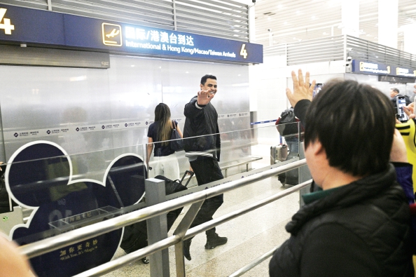 提着行李的莫雷诺刚一出现,便被球迷团团围住。面对络绎不绝的签名、合影请求,他全程驻足配合、有求必应。合影、签名,一系列流程依旧驾轻就熟。在球迷的轮番互动下,莫雷诺在到达口停留近半小时,随后才在机场工作人员引导下前往停车场。