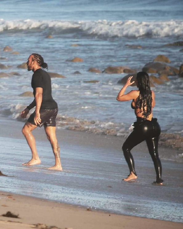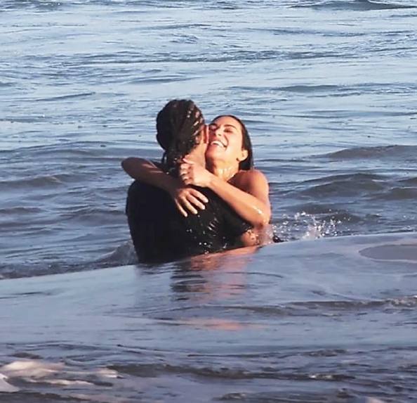 水中相拥,深情对视,满脸笑容地享受假期——在马里布海滩的美景中,汉密尔顿和卡戴珊被外界拍到了两人迄今亲密度最高的一组照片。结合两人此前在社交媒体上直接关联了对方的软性官宣,这段关注度颇高的名人恋情已被彻底盖章认定。