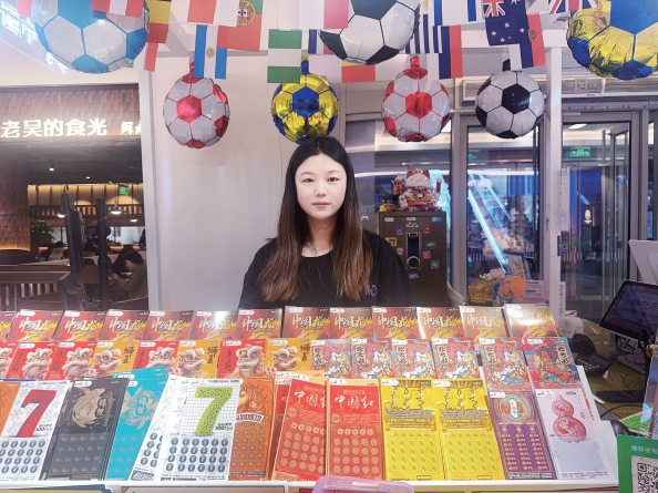 除了刮刮卡销量喜人,店里的竞彩同样卖得风生水起。每逢大赛,串关大奖屡见不鲜。“古北这边年轻人多,不少人对竞彩颇有研究。很多人趁着午休来打票,第二天午休就能兑奖,便捷又高效。”午后1点多,客人们三三两两登门购买“顶呱刮”即开票。无论中奖与否,刮开涂层那一瞬间的刺激,为平淡的生活平添了无穷趣味。