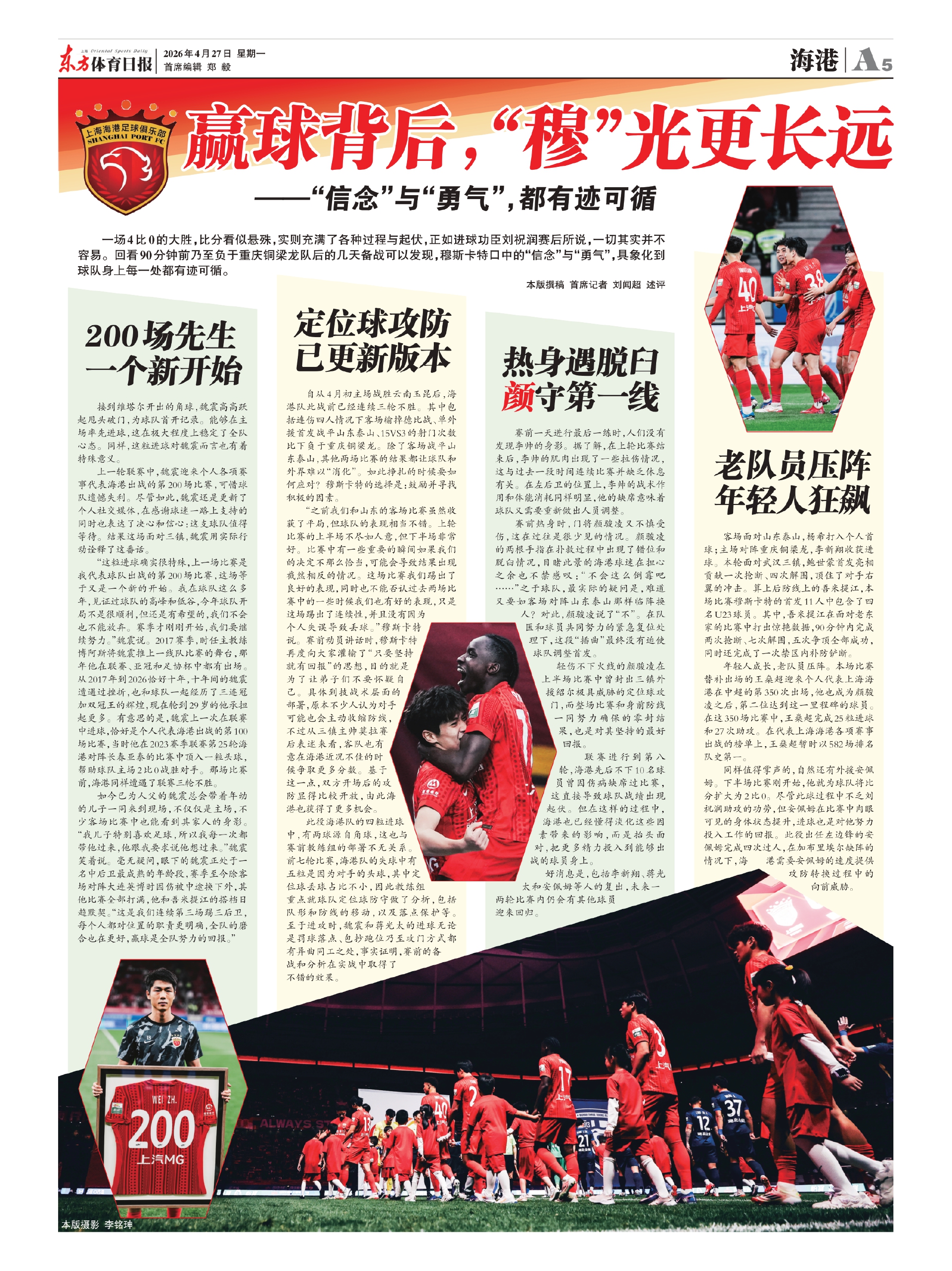上一轮联赛中,魏震迎来个人各项赛事代表海港出战的第200场比赛,可惜球队遗憾失利。尽管如此,魏震还是更新了个人社交媒体,在感谢球迷一路上支持的同时也表达了决心和信心:这支球队值得等待。结果这场面对三镇,魏震用实际行动诠释了这番话。