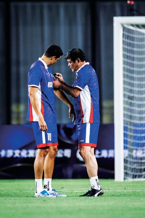 主办方最早的一种选择是由范志毅担任传奇明星队的队长,那么莫雷诺就是另外一支东方荣耀队的队长。而最终,上半场开场时,还是安排范志毅担任东方荣耀队的队长,而传奇明星队的队长则由魏群担任。在赛前的球员通道里,看到范志毅和莫雷诺一前一后带着球员准备入场时,还是非常让人感慨。