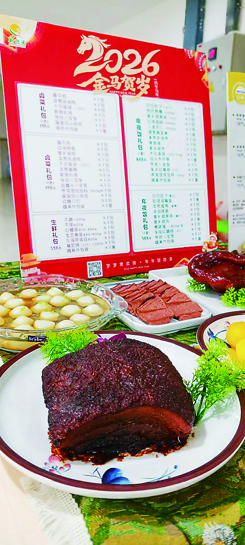 2月10日晚上,食堂全员出动现制卤味咸货,本村老人可单点酱牛肉、走油蹄髈、白切羊肉等年夜饭“硬菜”,也可以选择258元、398元、488元三款超值大礼包,凭专属卡均享受8.5折优惠。“春节屋里厢要请客,一记头端上噶许多本帮冷菜,绝对有面子!”李老伯说。