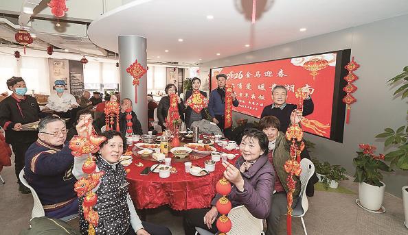 “开饭咯——”随着静安区大宁路街道大宁路540弄居民区党总支副书记徐逸俊的一声招呼,一场特殊的“团圆饭”热闹开席。一道道热气腾腾的饭菜陆续被端上桌,红烧羊肉、四喜烤麸、咸肉蒸百叶……荤素搭配、营养均衡。区人大代表、康成投资(中国)有限公司纺织商品部总经理周莉,人大大宁路街道工委副主任朱慧也来到现场,与独居老人们欢聚一堂,共话家常、共迎新春。
