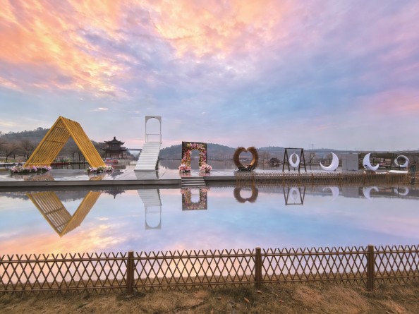 除了天空之镜与嫦娥奔月,景区内的发财玫瑰墙、湖边爱心椅等打卡点也备受游客青睐。玫瑰墙色彩艳丽,浪漫十足,是情侣打卡的必到之处;爱心椅临湖而设,背靠青山、面朝碧水,坐在椅上,看湖光山色,享岁月静好,每一张照片都充满温馨与诗意。这些打卡点,将时尚元素与自然景观完美融合,让秀美耕读既有山水的诗意,又有现代的时尚,成为名副其实的“网红景区”。