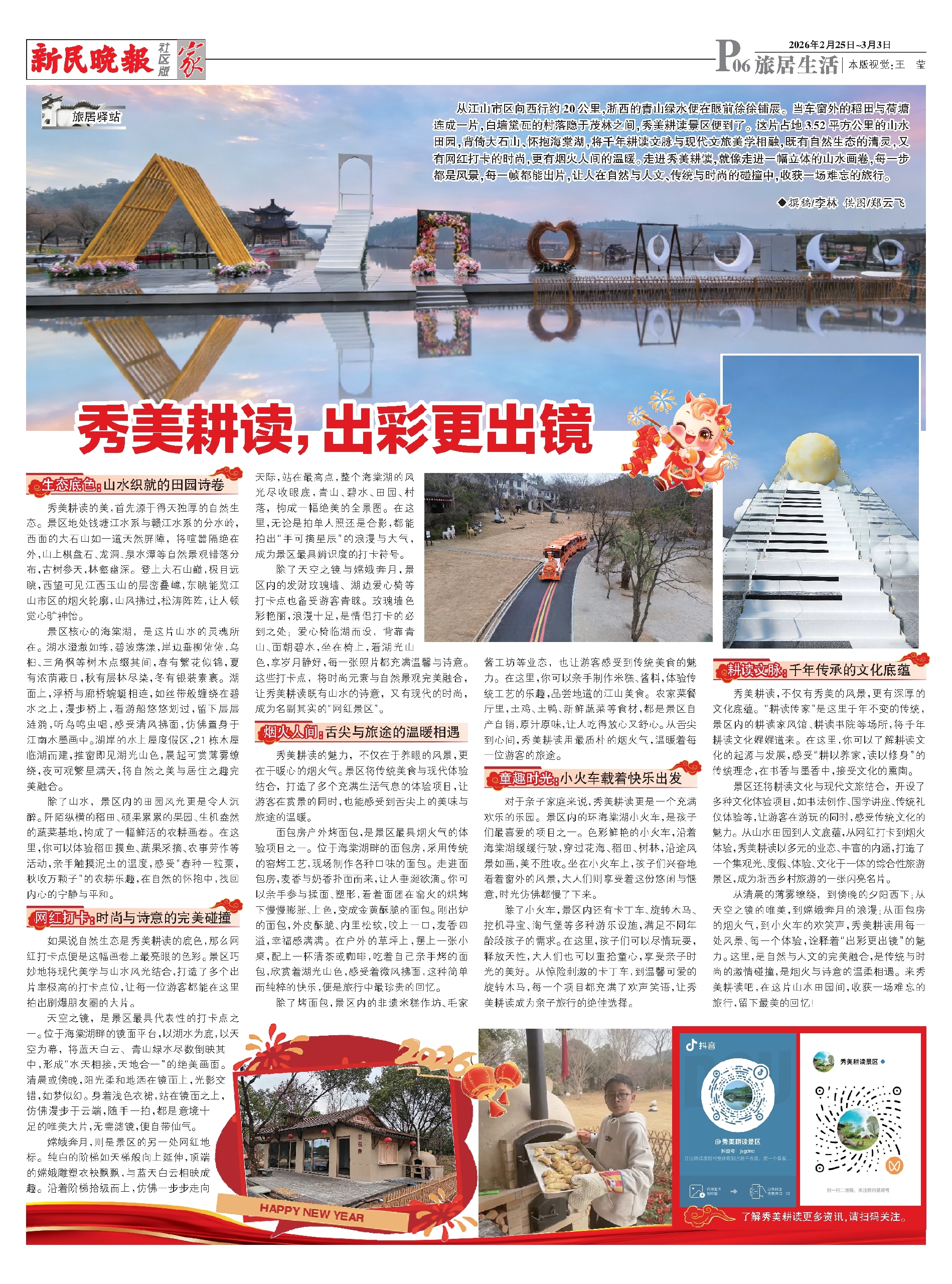 从清晨的薄雾缭绕,到傍晚的夕阳西下;从天空之镜的唯美,到嫦娥奔月的浪漫;从面包房的烟火气,到小火车的欢笑声,秀美耕读用每一处风景、每一个体验,诠释着“出彩更出镜”的魅力。这里,是自然与人文的完美融合,是传统与时尚的激情碰撞,是烟火与诗意的温柔相遇。来秀美耕读吧,在这片山水田园间,收获一场难忘的旅行,留下最美的回忆!