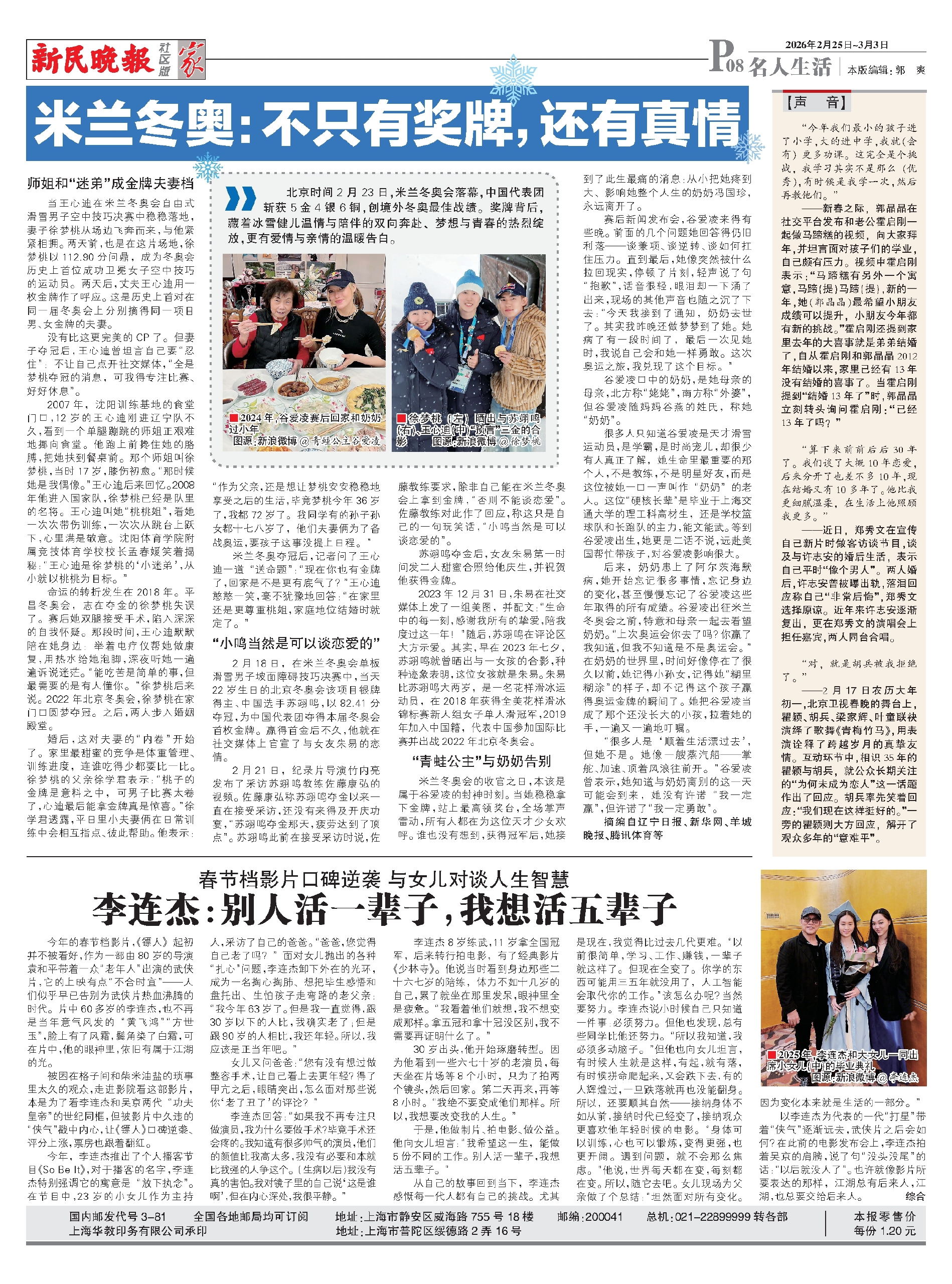 北京时间2月23日,米兰冬奥会落幕,中国代表团斩获5金4银6铜,创境外冬奥最佳战绩。奖牌背后,藏着冰雪健儿温情与陪伴的双向奔赴、梦想与青春的热烈绽放,更有爱情与亲情的温暖告白。
