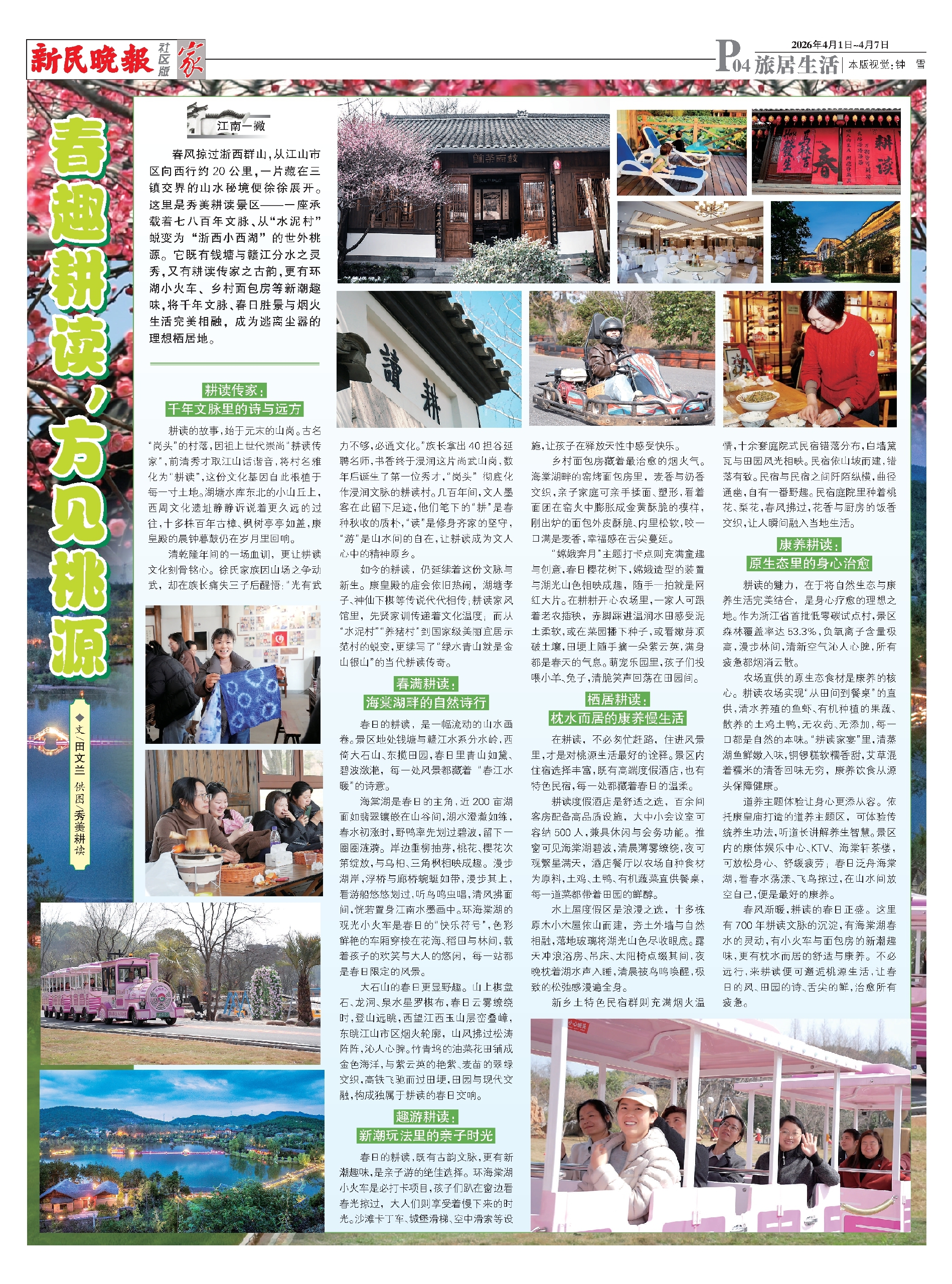 春风渐暖,耕读的春日正盛。这里有700年耕读文脉的沉淀,有海棠湖春水的灵动,有小火车与面包房的新潮趣味,更有枕水而居的舒适与康养。不必远行,来耕读便可邂逅桃源生活,让春日的风、田园的诗、舌尖的鲜,治愈所有疲惫。