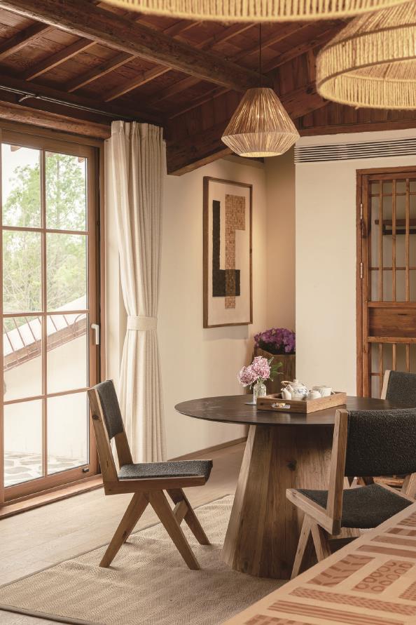 隐于花林间的“满山乡遇·壹号花院”,南园花繁,北院野趣,庭院回转,是藏在乡野里的诗意居所。毛石老木勾勒乡土肌理,黛瓦白墙融于自然,15套客房一房一境,推窗即是花影林风,全屋地暖、智能理疗床、乡野原木家具,让乡居兼具自然野趣与精致舒适。