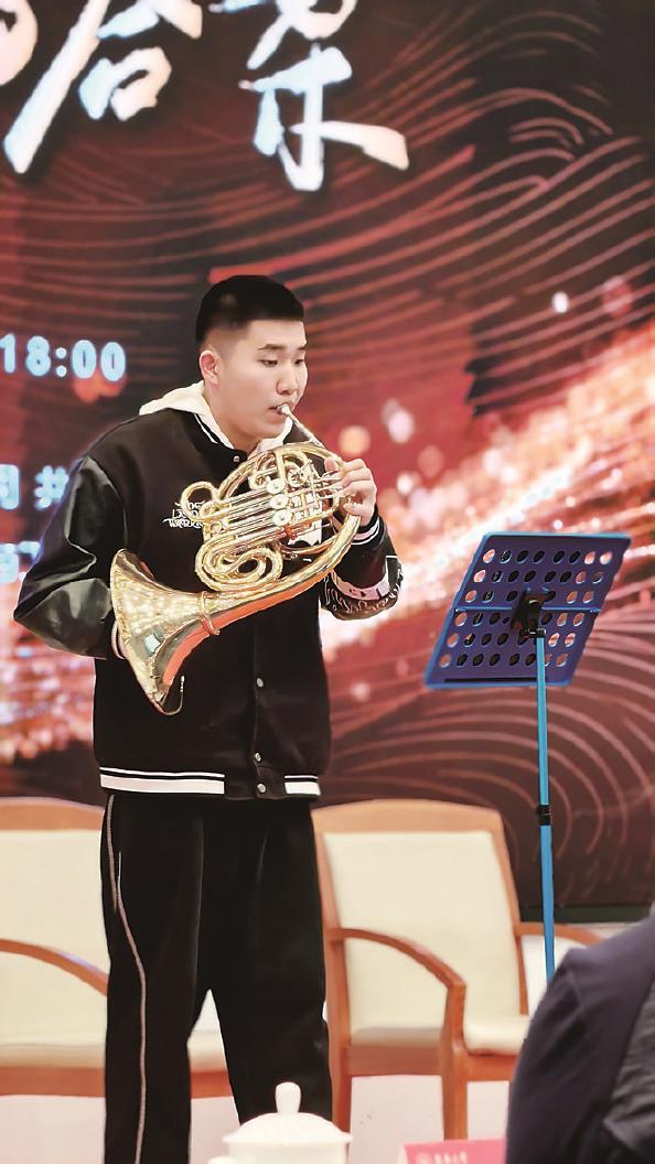 一曲《贝加尔湖畔》缓缓流淌……少年乐手从容吹奏,清澈的音符如湖面微光。台下师生屏息聆听,掌声经久不息。4月2日,是第19个世界孤独症日,在东华大学松江校区的报告厅里,这位吹奏圆号的少年政政(见图1),就是一名孤独症患者,也是公益纪录片《寻找爱的答案》的主人公之一。