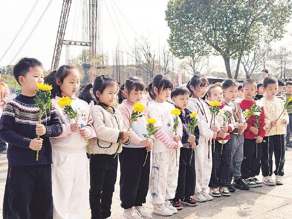 人间三月芳菲始,又是一年清明时。4月1日下午,金山区金卫幼儿园党、团员教师,大班组全体师幼及家长志愿者,赴金山卫抗战遗址纪念园开展清明祭扫活动,以庄重的方式缅怀革命先烈,追忆英雄事迹。