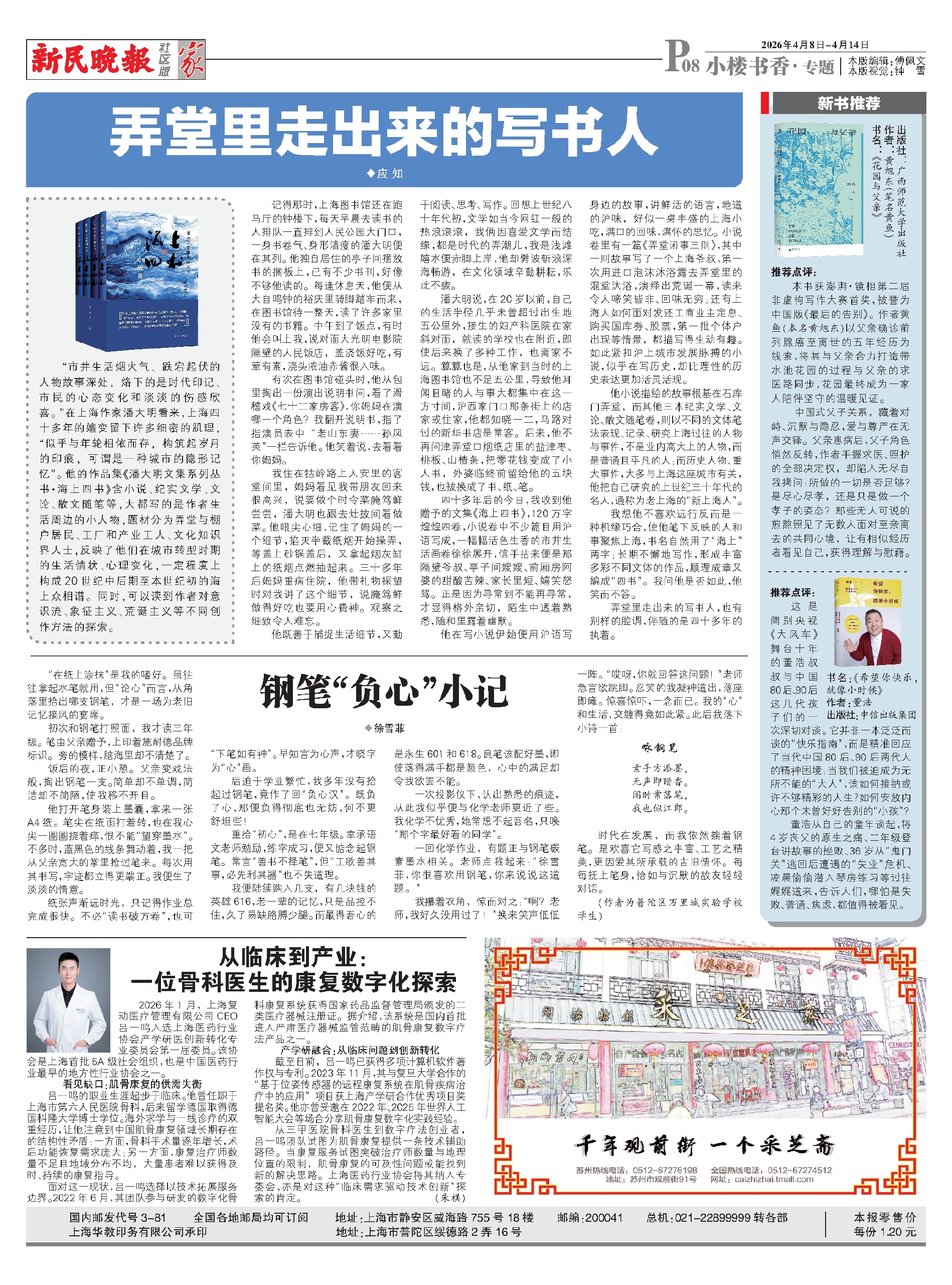 我想他不喜欢远行反而是一种机缘巧合,使他笔下反映的人和事聚焦上海,书名自然用了“海上”两字;长期不懈地写作,形成丰富多彩不同文体的作品,顺理成章又编成“四书”。我问他是否如此,他笑而不答。