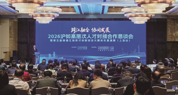 3月29日,“跨江融合 协同发展”沪如高层次人才对接合作恳谈会暨第五届南通江海英才创新创业大赛如东直通赛(上海站)在沪举行。来自科教、医卫、工商等领域的近300位嘉宾齐聚一堂,共话沪如人才科技合作,共绘跨江融合发展蓝图。