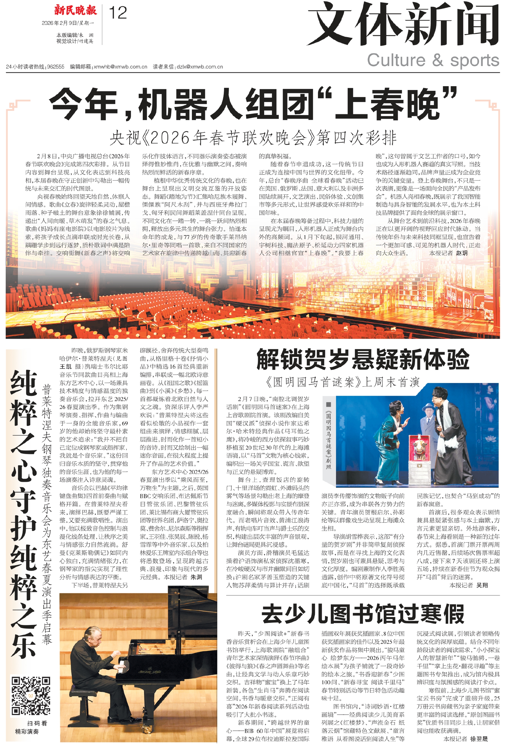 从舞台艺术到前沿科技,2026年春晚正在以更开阔的视野回应时代脉动。当传统年俗与未来科技同框呈现,也宣告着一个更加可感、可见的机器人时代,正走向大众生活。 本报记者 赵玥