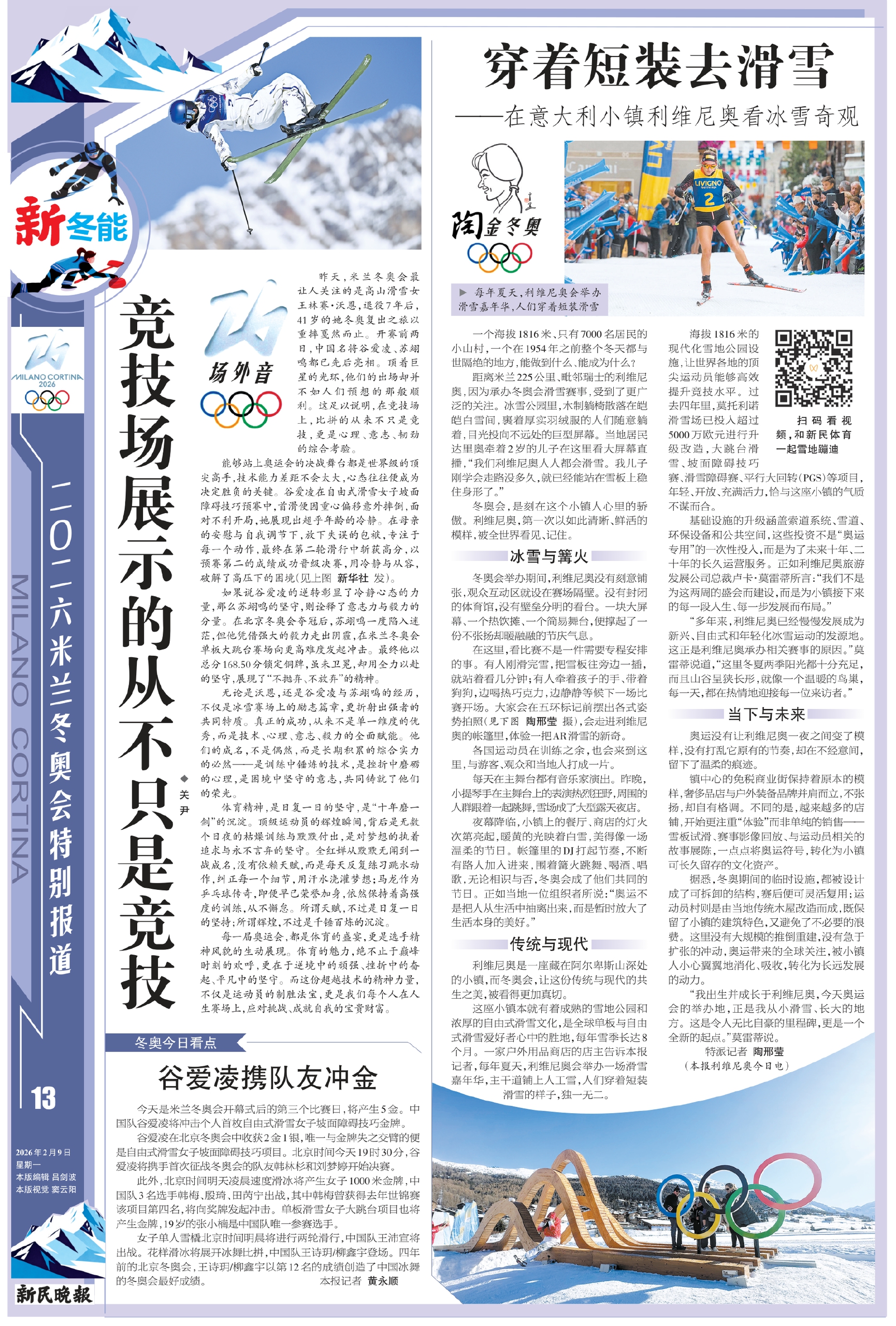昨天,米兰冬奥会最让人关注的是高山滑雪女王林赛·沃恩,退役7年后,41岁的她冬奥复出之旅以重摔戛然而止。开赛前两日,中国名将谷爱凌、苏翊鸣都已先后亮相。顶着巨星的光环,他们的出场却并不如人们预想的那般顺利。这足以说明,在竞技场上,比拼的从来不只是竞技,更是心理、意志、韧劲的综合考验。