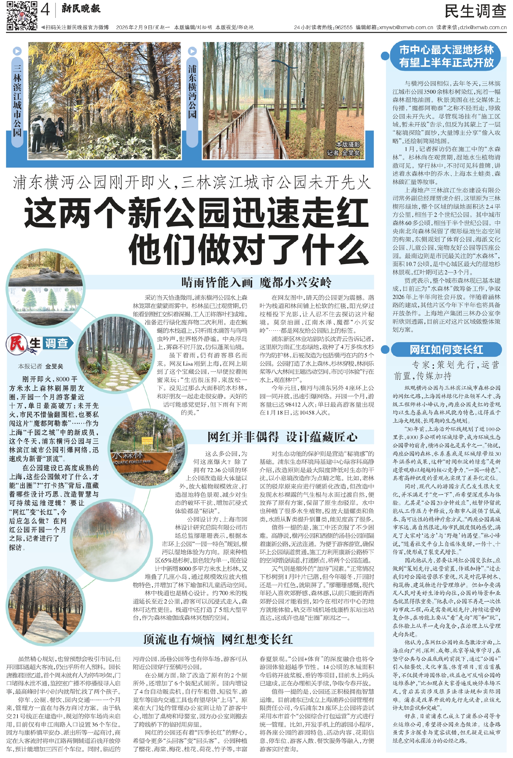 刚开即火,8000平方米水上森林刷屏朋友圈,开园一个月游客量近十万,单日最高破万;未开先火,市民不惜偷翻围栏,也要私闯这片“魔都阿勒泰”……作为上海“千园之城”中的新成员,这个冬天,浦东横沔公园与三林滨江城市公园引爆网络,迅速成为新晋“顶流”。