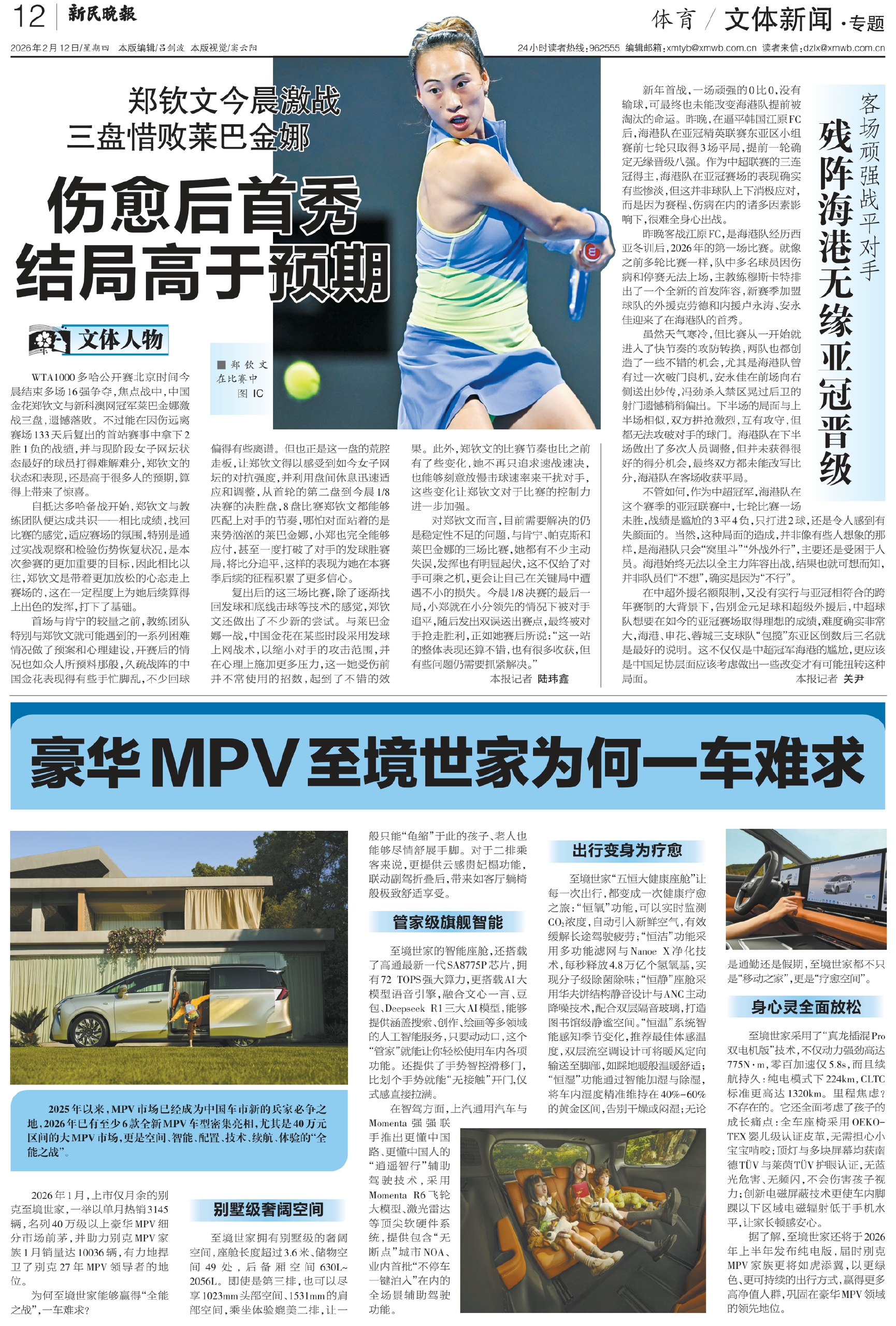 WTA1000多哈公开赛北京时间今晨结束多场16强争夺,焦点战中,中国金花郑钦文与新科澳网冠军莱巴金娜激战三盘,遗憾落败。不过能在因伤远离赛场133天后复出的首站赛事中拿下2胜1负的战绩,并与现阶段女子网坛状态最好的球员打得难解难分,郑钦文的状态和表现,还是高于很多人的预期,算得上带来了惊喜。