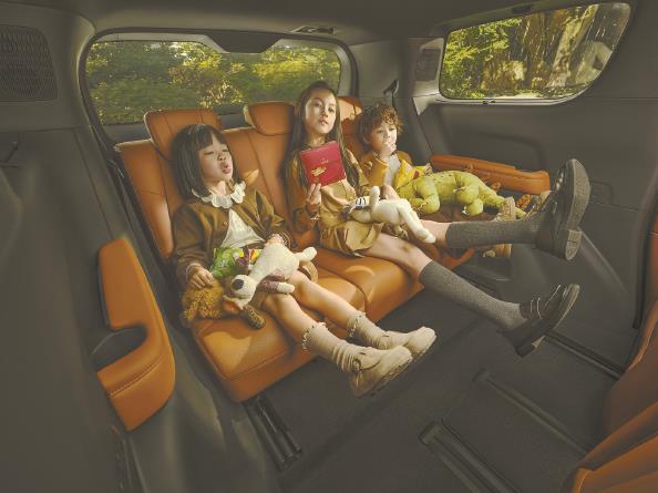 至境世家拥有别墅级的奢阔空间,座舱长度超过3.6米、储物空间49处,后备厢空间630L~2056L。即使是第三排,也可以尽享1023mm头部空间、1531mm的肩部空间,乘坐体验媲美二排,让一般只能“龟缩”于此的孩子、老人也能够尽情舒展手脚。对于二排乘客来说,更提供云感贵妃榻功能,联动副驾折叠后,带来如客厅躺椅般极致舒适享受。