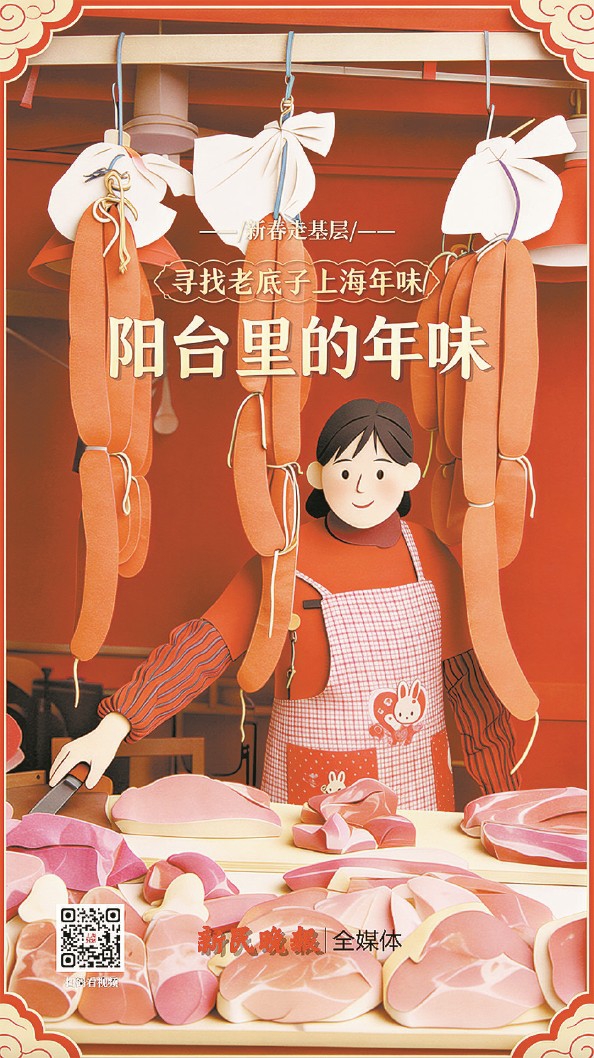 时间总是带来好味道。 在上海,寻常人家的屋檐下或阳台上陆续挂起的腊肉、风鸡和风鸭,往往是春节前最早的“风向标”。 因为这种风味无法速成。它不是简单的加盐腌制,而是需要低温、微风、适度的湿度和足够的时间才能制成,而上海冬季特有的“湿冷”气候,就为腌制腊肉创造了最佳的条件。 这种由时间带来的风味,是没有任何一种烹饪方法可以替代的。当一缕缕腊香弥漫街巷的时候,它激活的不仅仅是市井烟火中的年味,还有上海人刻在舌尖的年味记忆。 本报记者 李颖 张剑 潘碧云 孔明哲