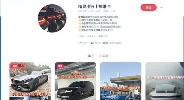 去年12月,赵女士计划与朋友租车前往北京滑雪。在小红书平台搜索“租车”后,一个名为“精灵出行丨樟维”的账号引起了她的注意。“对方是有‘蓝V认证’的,介绍里还写着‘线上排名第一的租车平台’,我当时觉得,有平台认证肯定靠谱。”