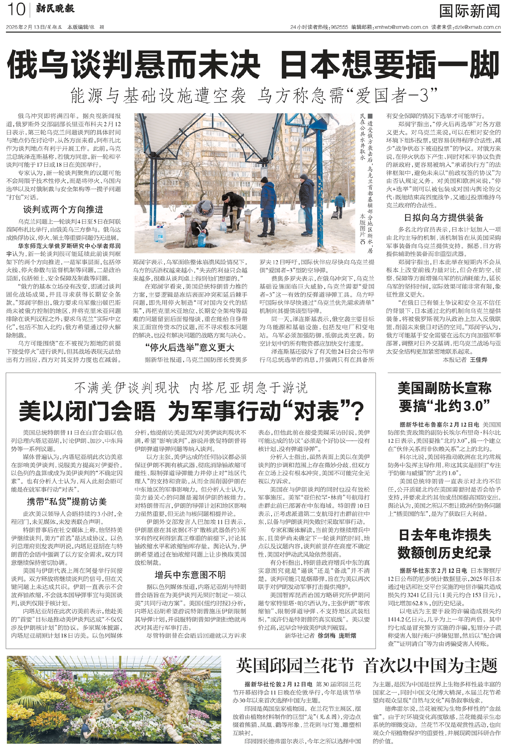 俄乌冲突即将满四年。据央视新闻报道,俄罗斯外交部副部长里亚布科夫2月12日表示,第三轮乌克兰问题谈判的具体时间与地点仍在讨论中,从各方面来看,阿布扎比作为谈判地点有利于开展工作。此前,乌克兰总统泽连斯基称,若俄方同意,新一轮和平谈判可能于17日或18日在美国举行。