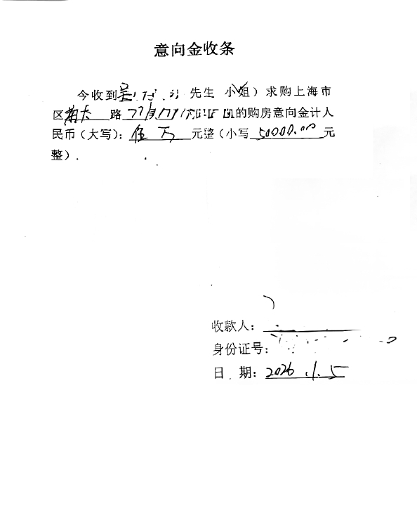 吴女士收到的意向金收条 本版图片均为受访者提供