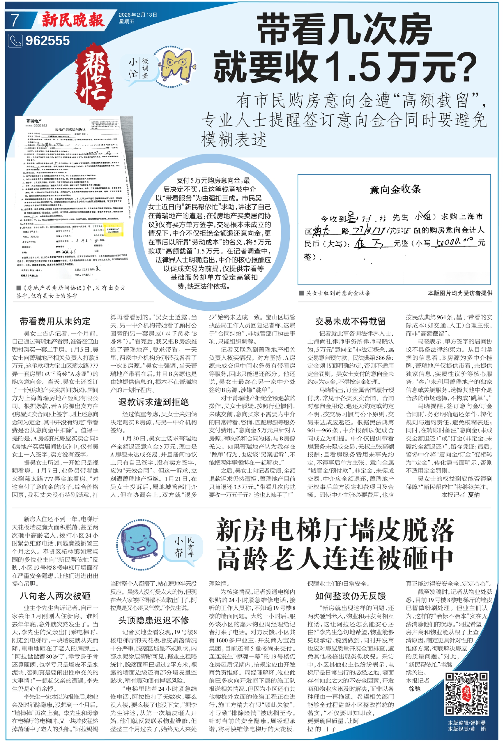 马晓提醒,签订意向金/订金合同时,务必明确退还条件、转化规则与违约责任,避免模糊表述;同时,在转账时备注“意向金(未成交全额退还)”或“订金(非定金,未履约全额退还)”,留存凭证;最后,警惕中介将“意向金/订金”变相转为“定金”,转化需书面明示,否则不适用定金罚则。
