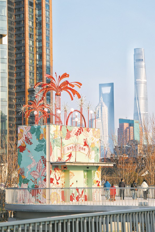 苏河湾万象天地慎余里的百年石库门披上喜庆新装,在这里,东方美学邂逅新潮体验 本报记者 李铭珅 摄