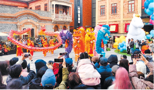 昨天,虹口今潮8弄龙腾狮跃,国家级非物质文化遗产“祥龙瑞狮贺新春”展演精彩纷呈,吸引众多市民游客 杨建正 摄